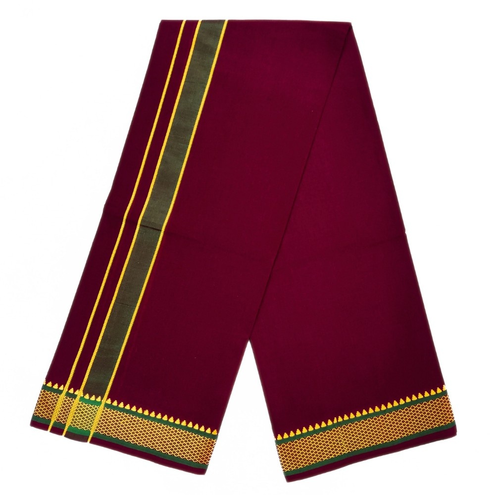 Maroon Color Premium Karishma Soft Silk 6 Inch Border Dhoti