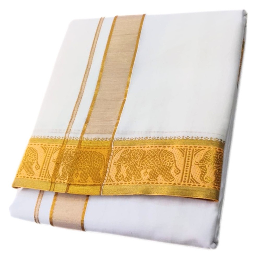 Gold Tissue Jari Border Premium Cotton Dhoti