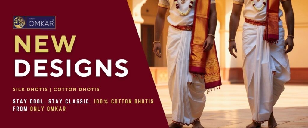 • “At Only Omkar, we offer both classic single-border cotton dhotis and grand gold-border silk dhotis designed for every occasion.”