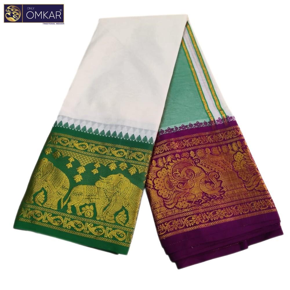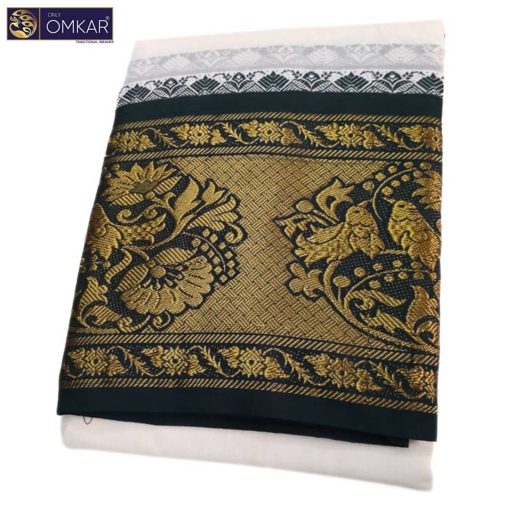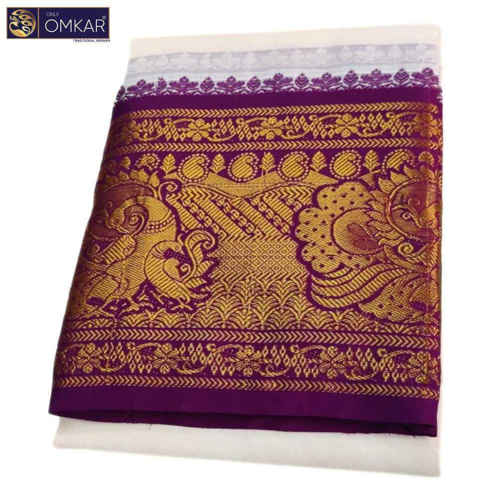 Description of 10 Inch Border Double Elephant Design Half White Dhoti 9×5