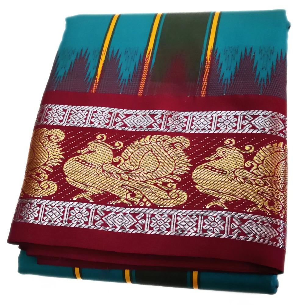 The yarn used is of Soft Silk quality and has a smooth feel to it; not only are the yarns made, but it is also a traditional wear dhoti. Order now online and we will deliver it to your door.