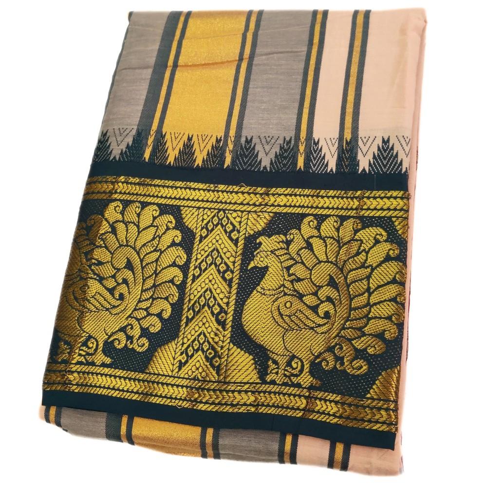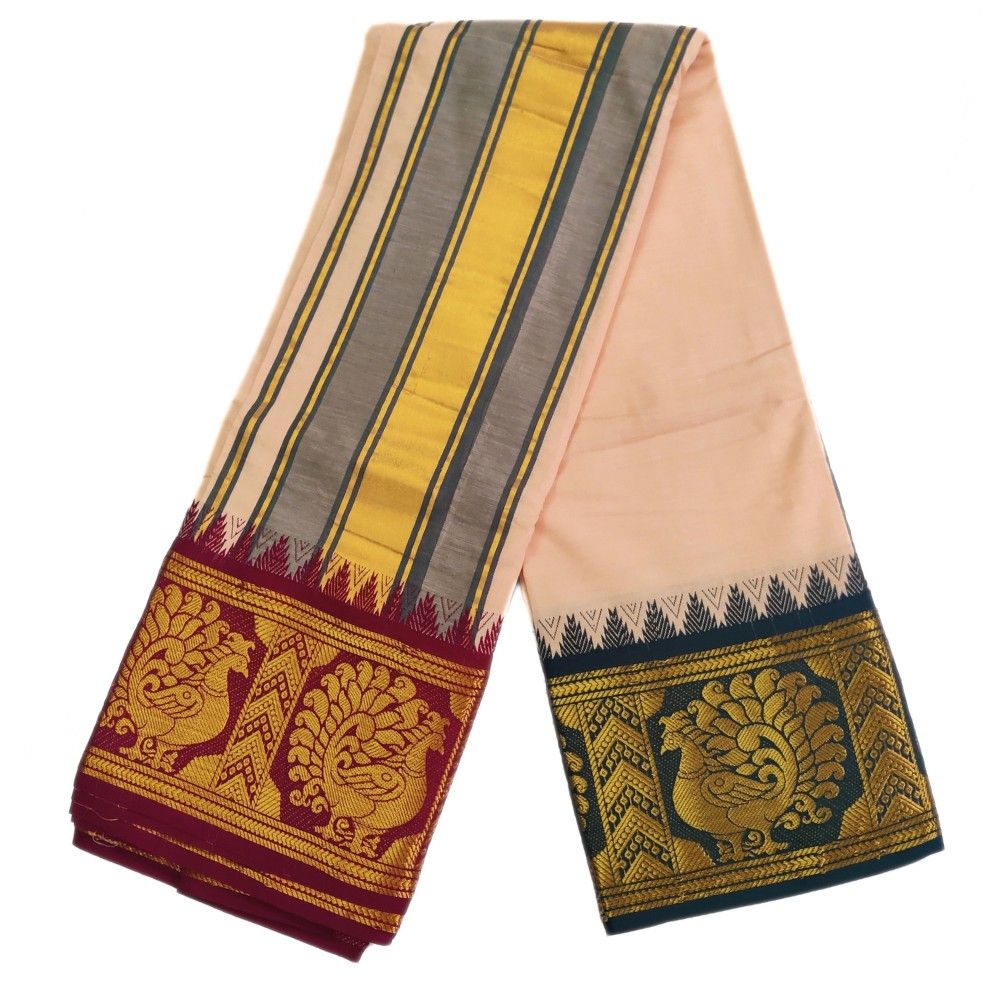 Description Of Beige Color Peacock Designed Jacquard Dhoti