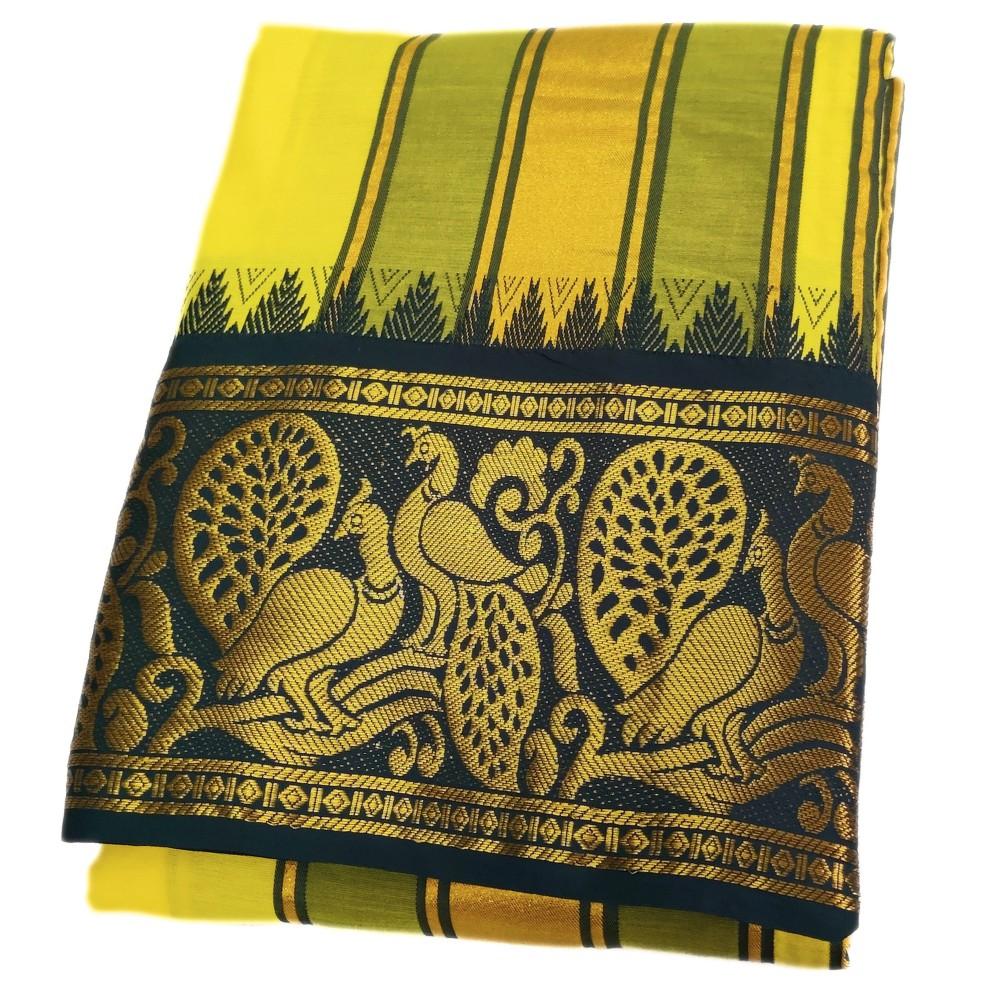 The yarn used is of Soft Cotton high quality and has a smooth feel to it; not only are the yarns made, but it is also a traditional wear dhoti. Order now online and we will deliver it to your door.
