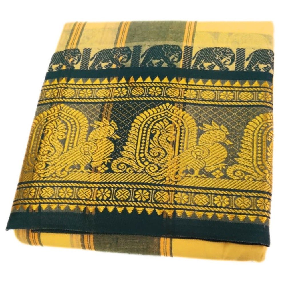 The yarn used is of high quality and has a smooth feel to it; not only are the yarns made, but it is also a traditional wear dhoti. This Panchakacham/9×5 Dhoti Comes with Dhoti+Angavastram in single running Material, Order now online and we will deliver it to your door.