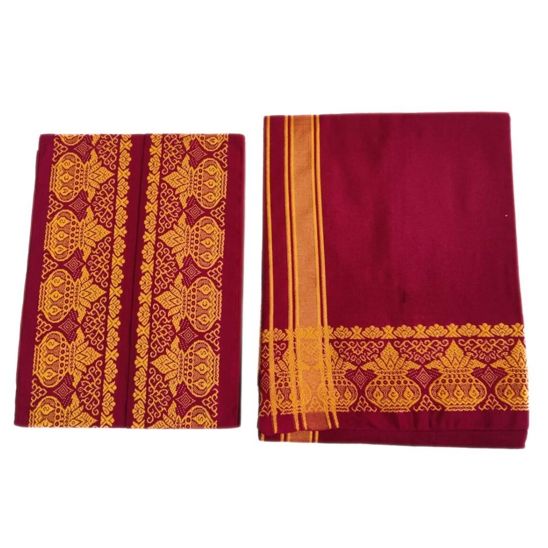 Light Kavi Color Kalasam Design 2 Meter Dhoti Towel Set