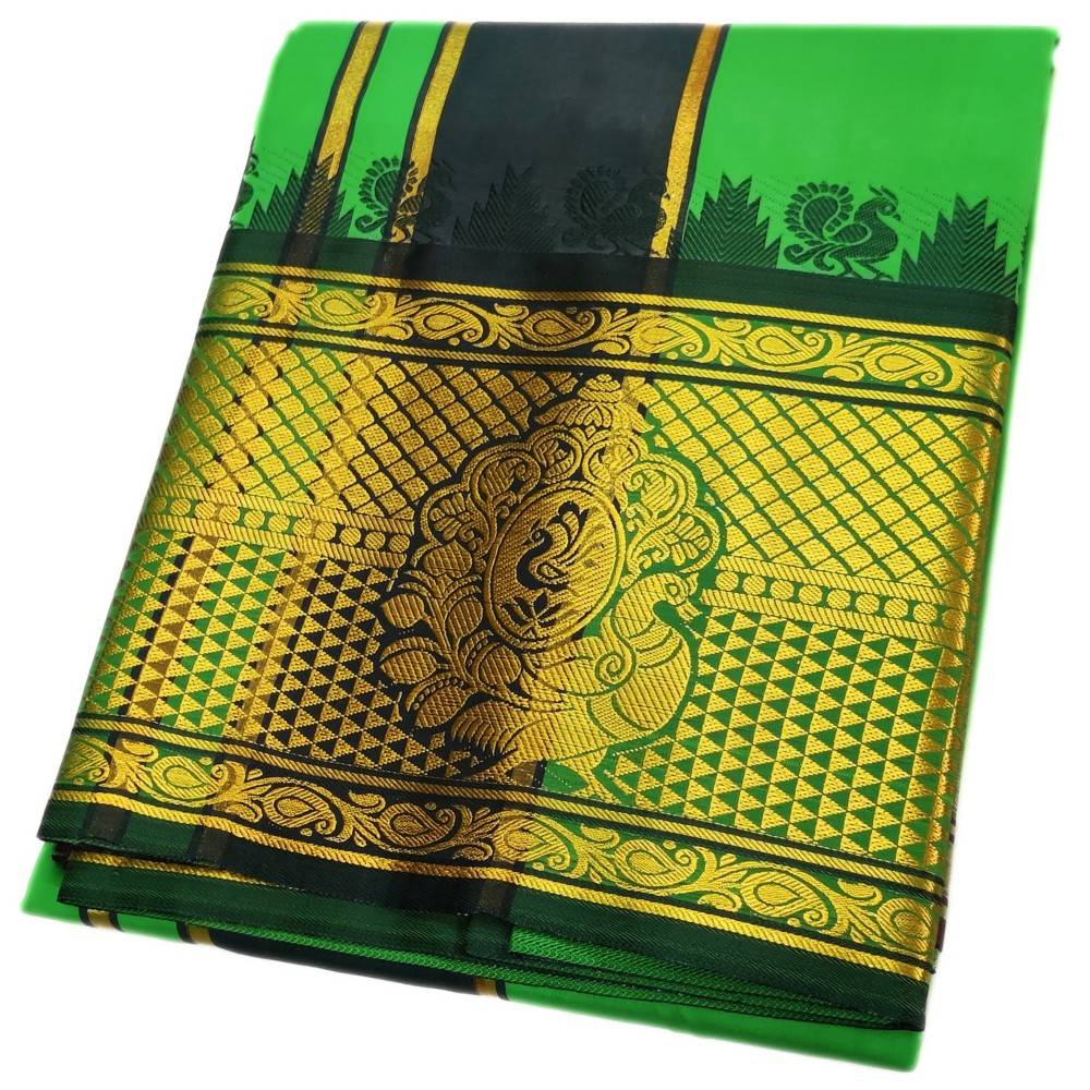 Note: Choose your item based upon the colour of the dhoti not by Border Design. The border Designs are subject to availability.