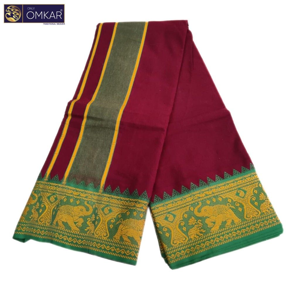 The yarn used is of high quality and has a smooth feel to it; not only are the yarns made, but it is also a traditional wear dhoti. This Panchakacham/9×5 Dhoti Comes with Dhoti+Angavastram in single running Material, Order now online and we will deliver it to your door.