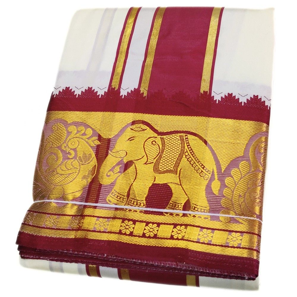 Note: Choose your item based upon the colour of the dhoti not by Border Design. The border Designs are subject to availability.