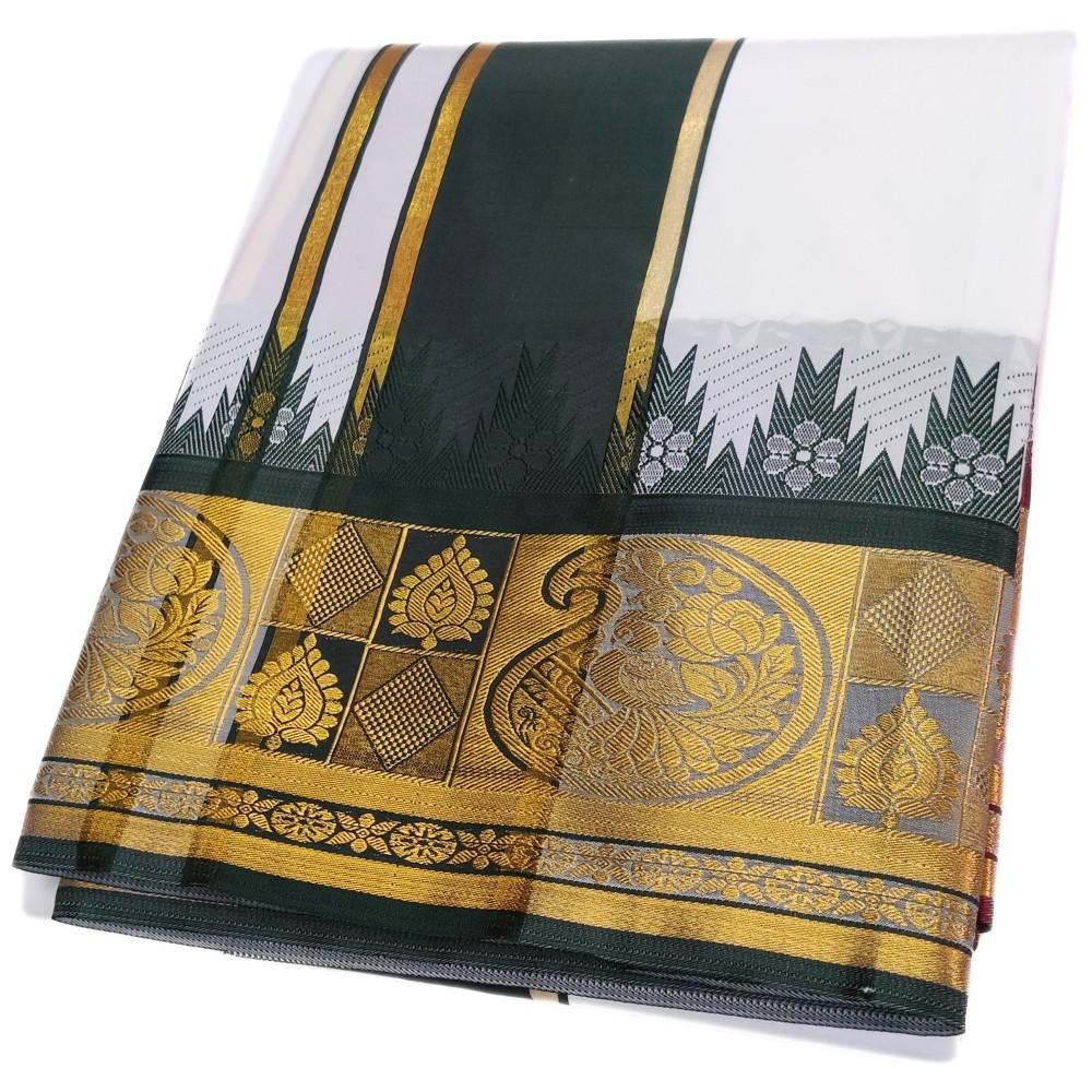 Note: Choose your item based upon the colour of the dhoti not by Border Design. The border Designs are subject to availability.