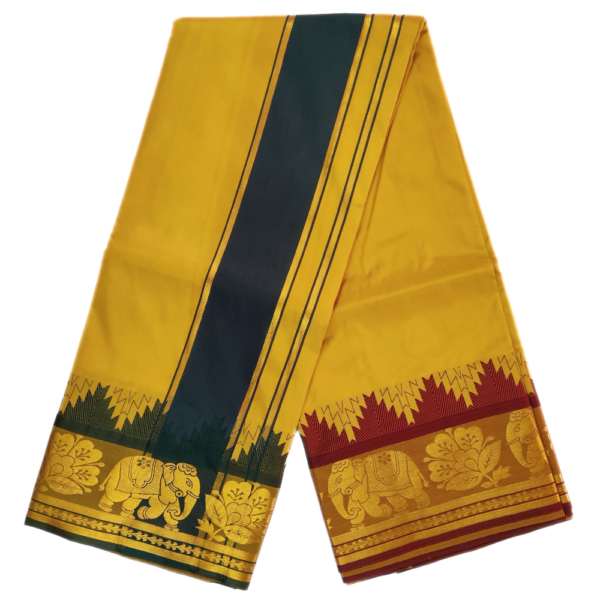 Note: Choose your item based upon the colour of the dhoti not by Border Design. The border Designs are subject to availability.