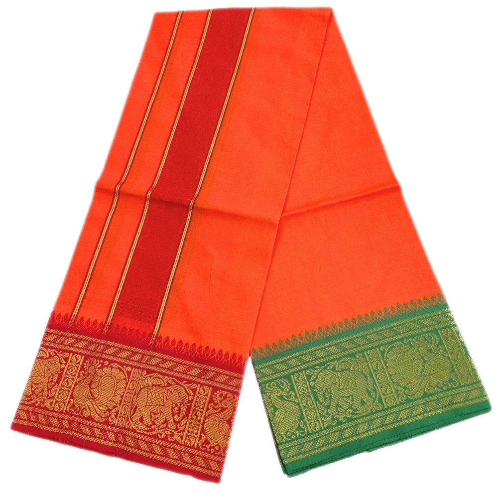 Description of Orange Color Cotton Jacquard 2 Meter Lungi/Dhoti