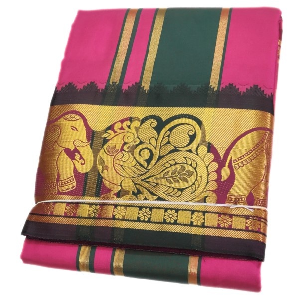 Note: Choose your item based upon the colour of the dhoti not by Border Design. The border Designs are subject to availability.