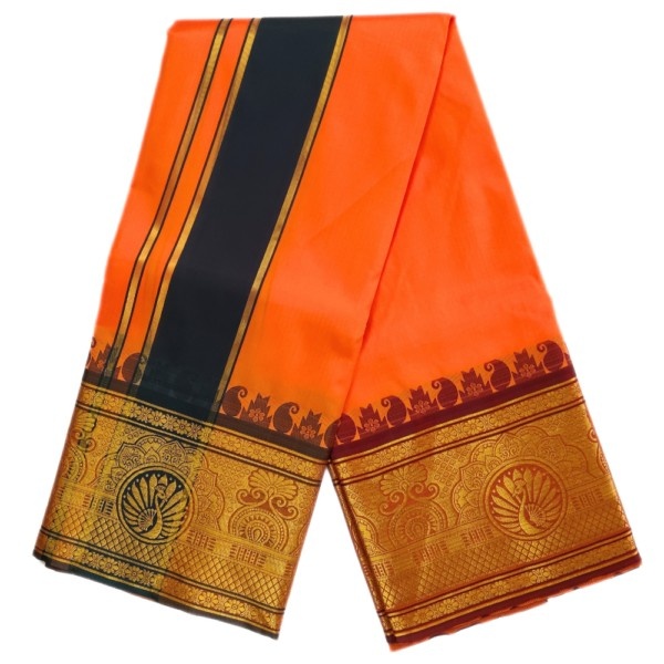 Orange Color Premium Karishma Soft Silk 9 Inch Border Dhoti