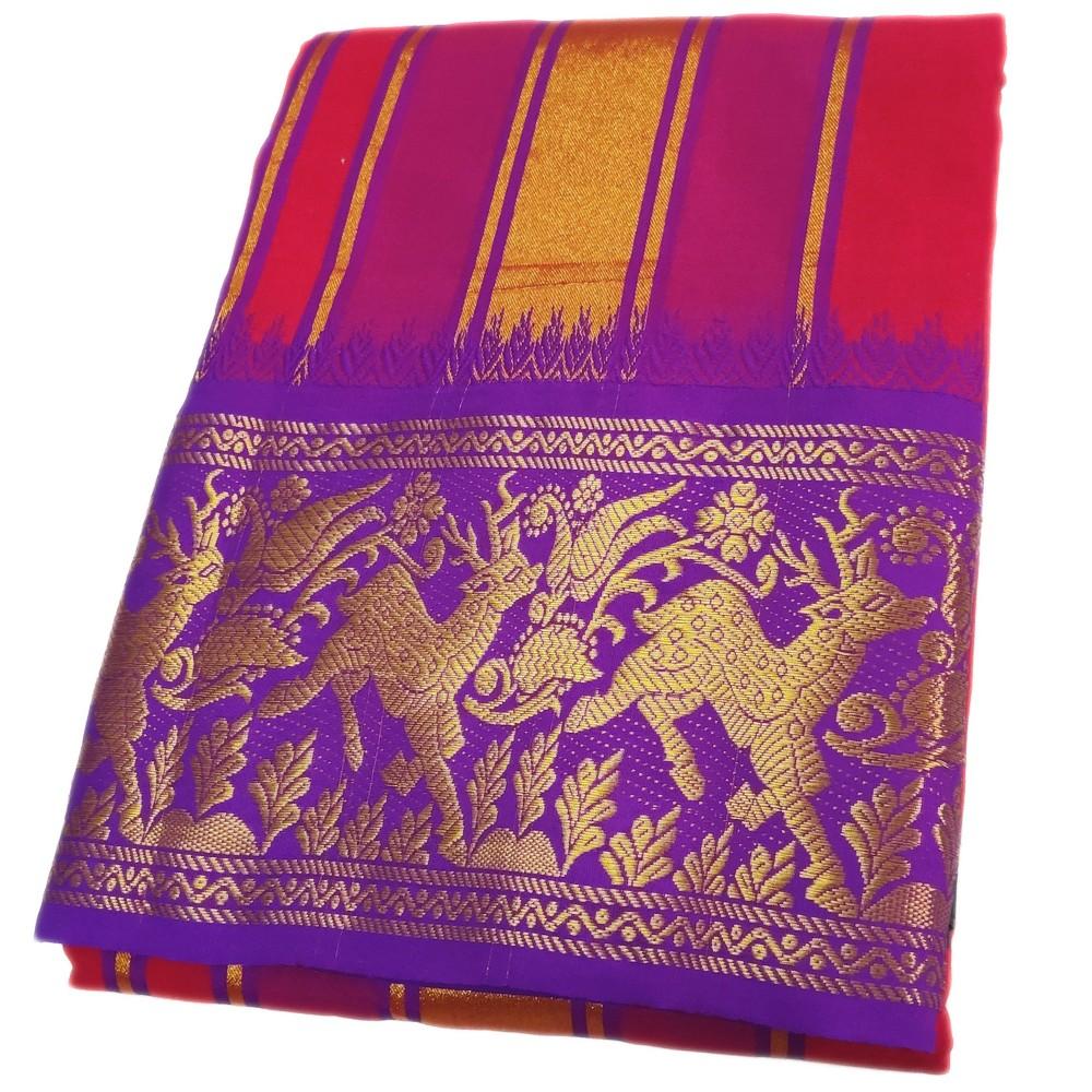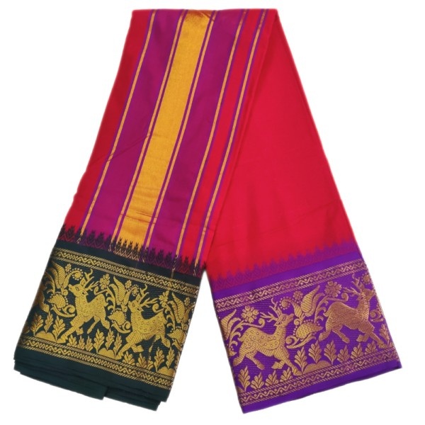 Description Of Red Color Deer Designed Jacquard Dhoti