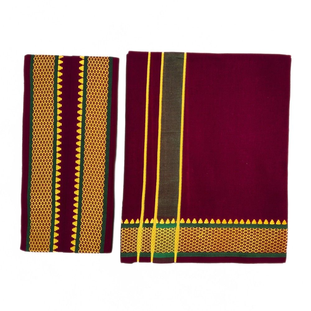 Red Color Mayilkan Cotton Dhoti/Lungi + Towel Combo