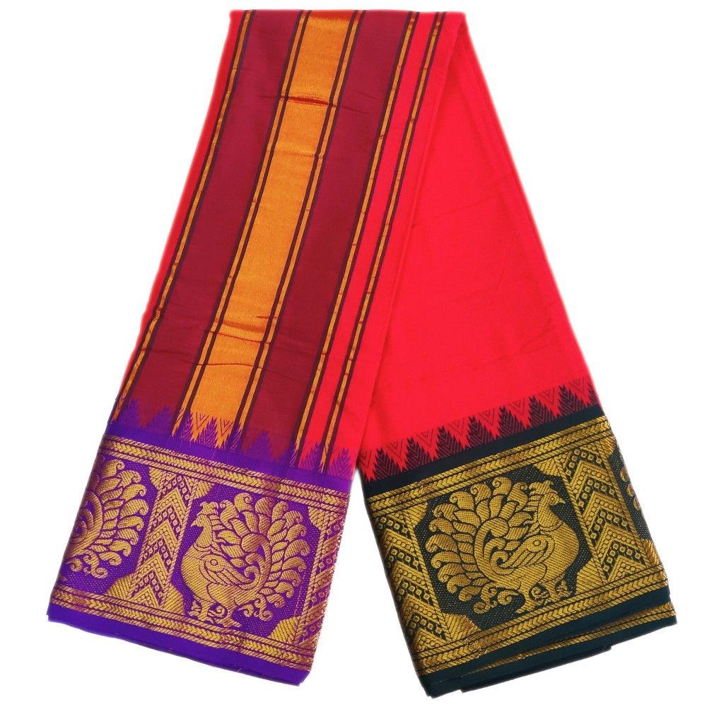 Tomato Red Color Peacock Designed Jacquard Dhoti