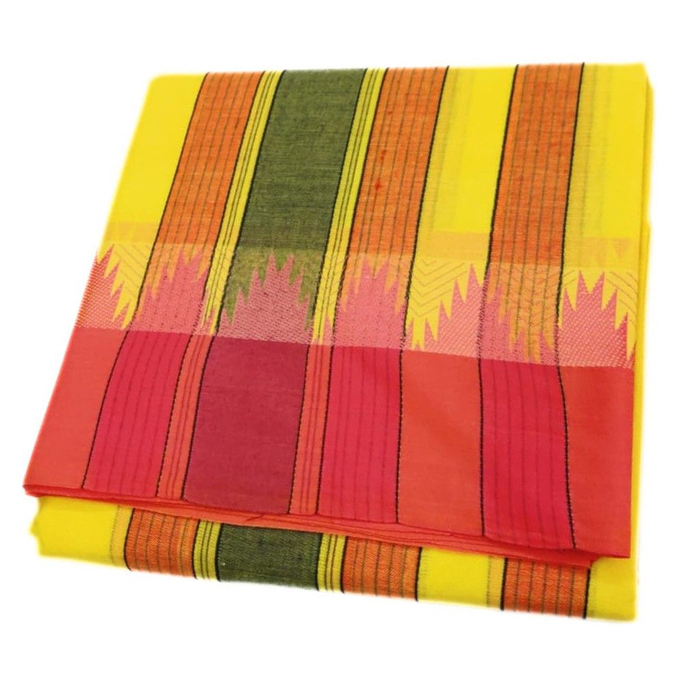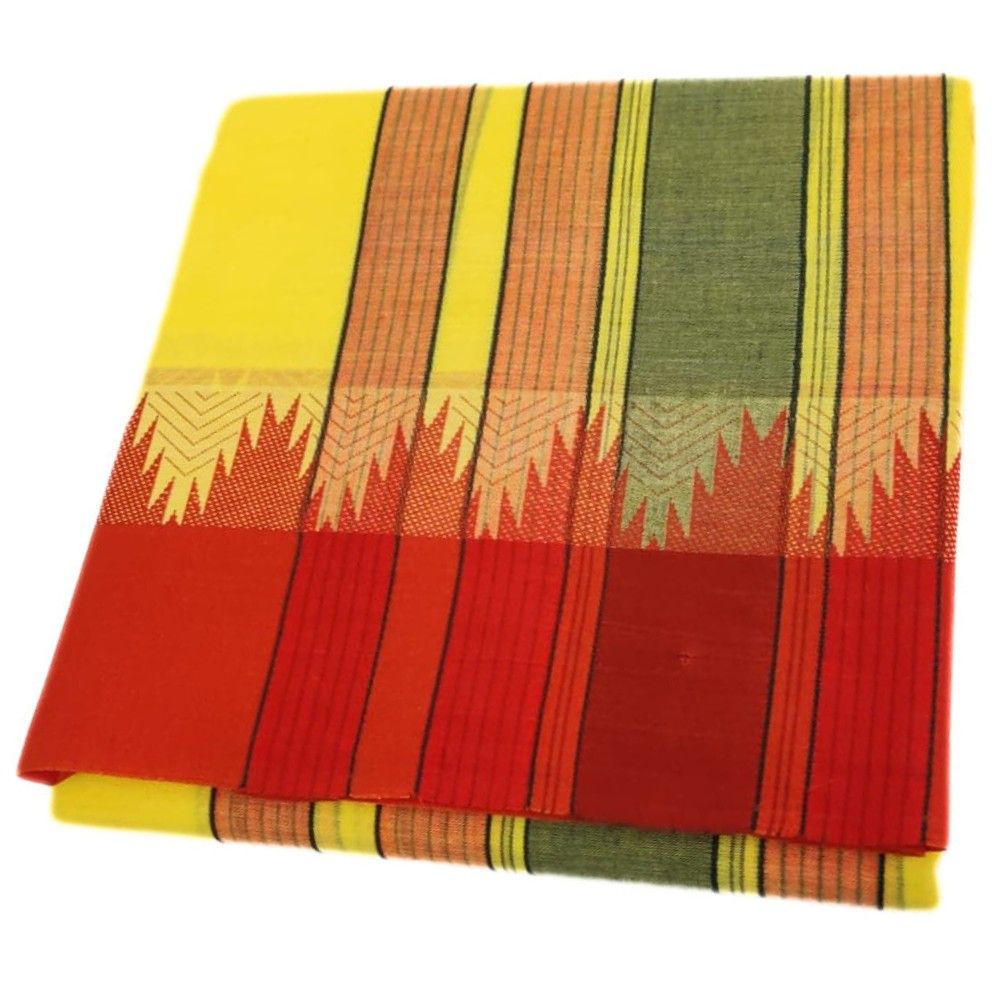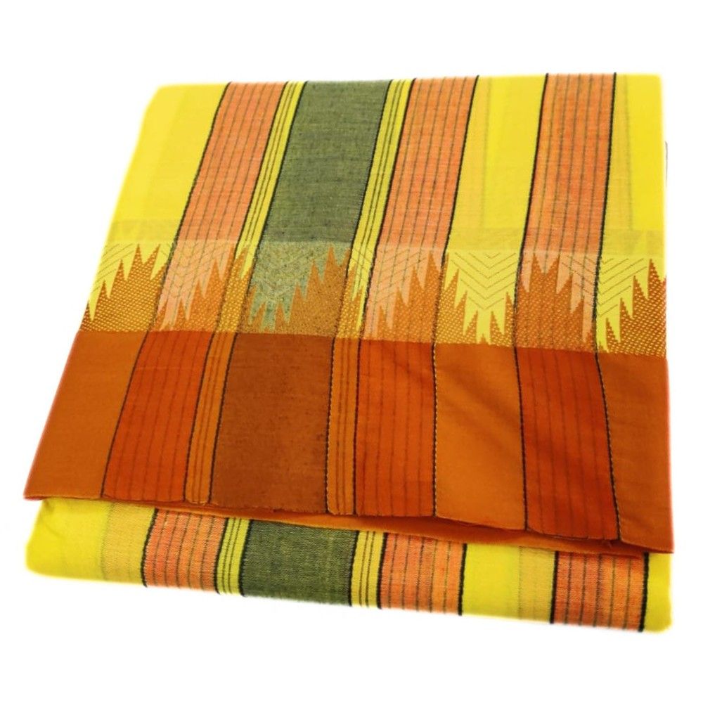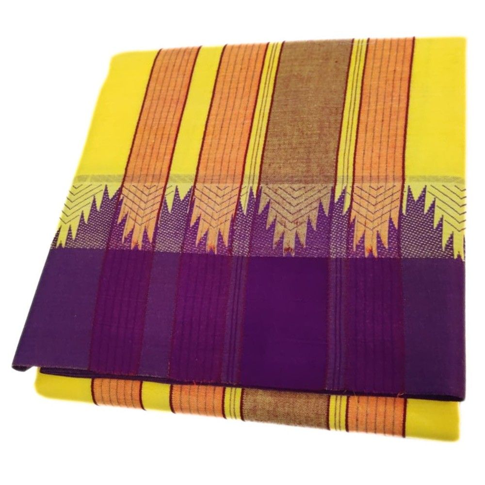 Description of Yellow Color Traditional Vaishnava Mundhi Temple Border Dhoti 9×5