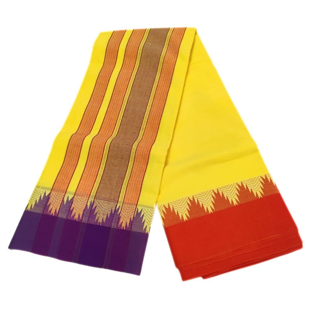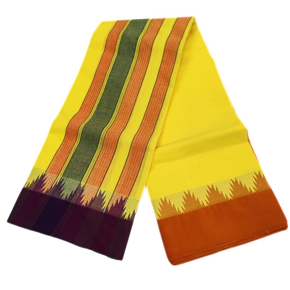 Yellow Color Traditional Vaishnava Mundhi Temple Border Dhoti 9×5