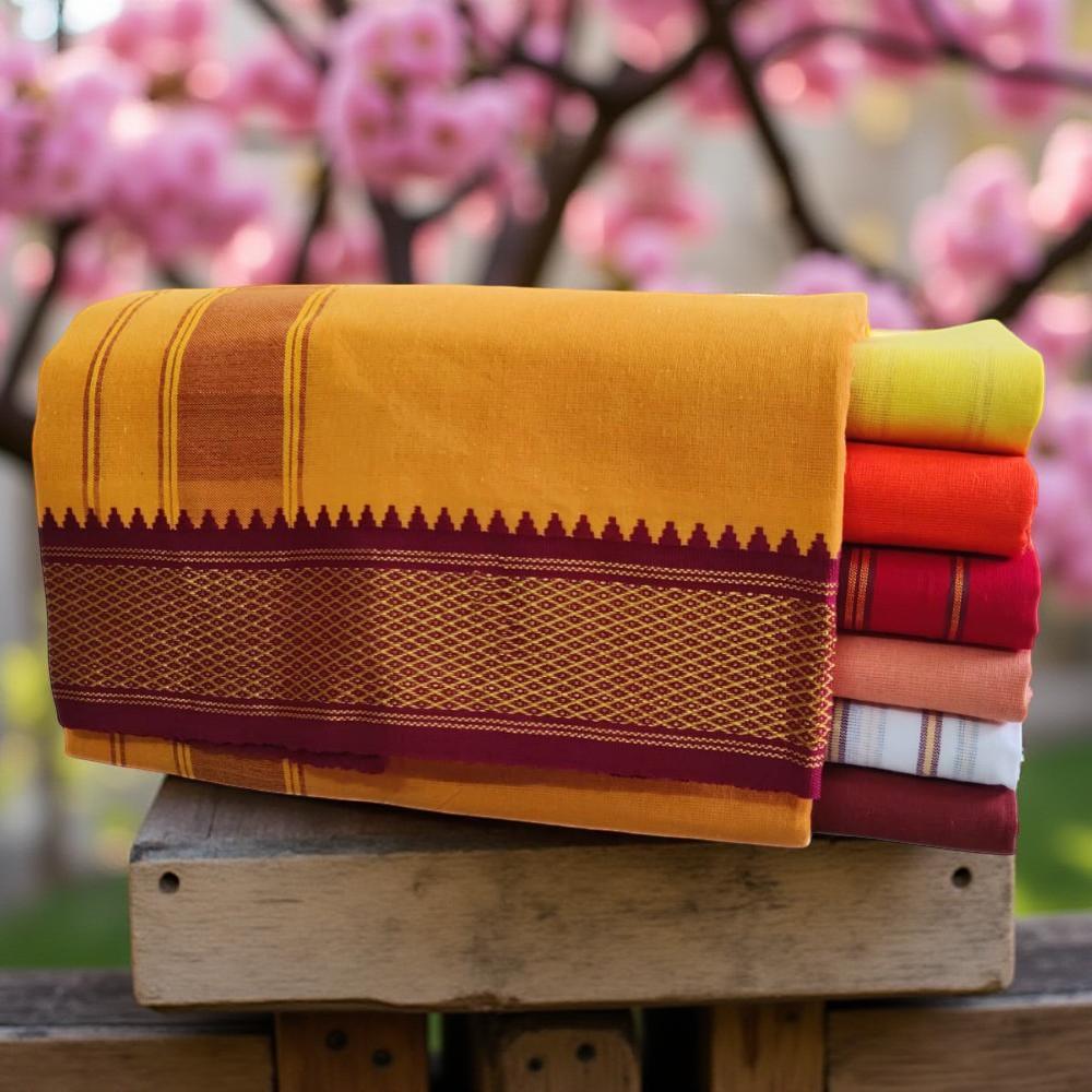 The yarn used is of Soft quality and has a smooth feel to it; not only are the yarns made, but it is also a traditional wear dhoti. Order now online and we will deliver it to your door.